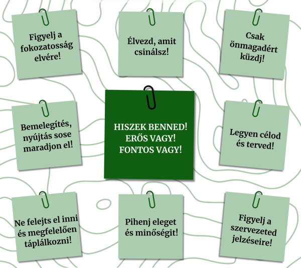 - Bemelegítés, nyújtás sose maradjon el! -> A szervezetedet fel kell készítened arra, ami vár rá és hagynod kell, hogy ne hirtelen érjen az véget, hanem szépen fokozatosan egy nyújtás segítségével méltón lezárd azt. Az emberi test egy gyönyörű gépezet, amiben élettani folyamatok sokasága megy végbe minden egyes mozzanatod folyamán. Ha sokáig szeretnéd használni bánj vele megfelelően, hisz ő mozgat téged és jutalmaz meg millió élménnyel.